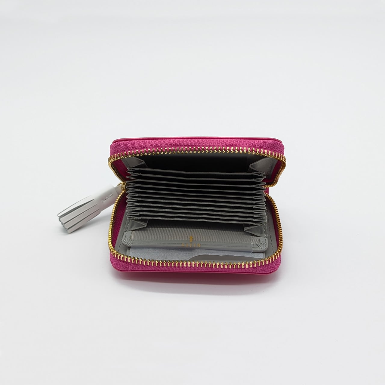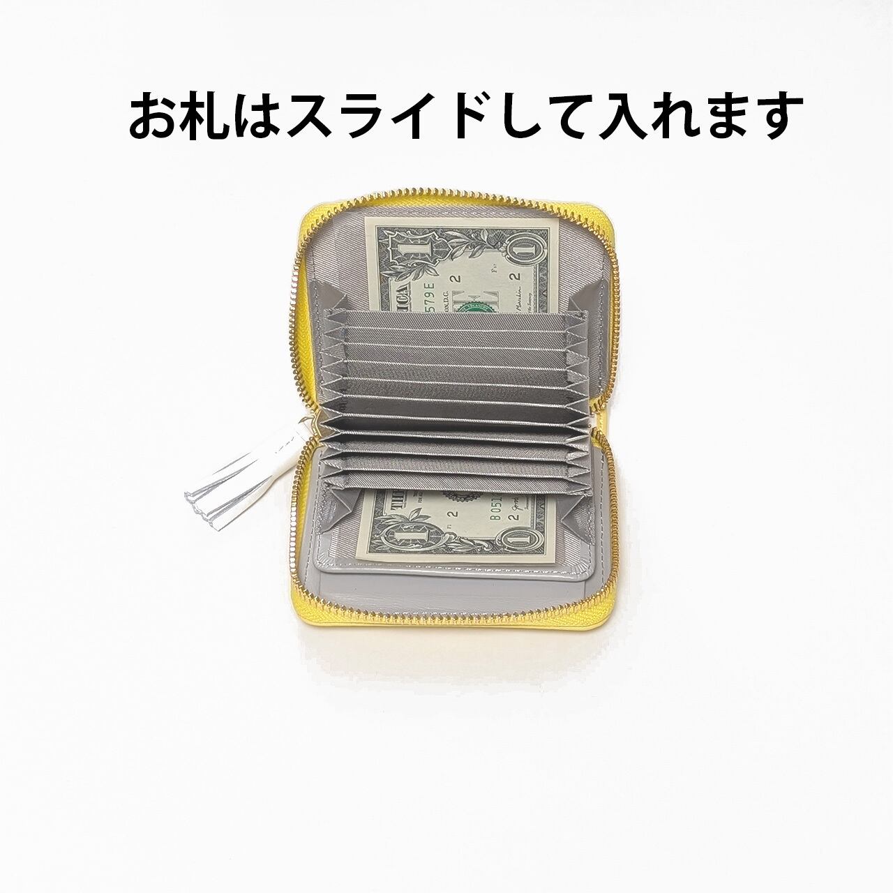手ごろなサイズで、取り出しやすい小銭入れや10枚入るジャバラのカードポケット、背面ポケットがあり、お札は折らずにジャバラポケットの下にスリップ式で収納でき使いやすくなっています。また、スキミング防止シートを使用し、大切なカード情報のスキミング被害を防止しています。